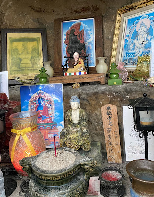 往上走有多塊巨大岩石,日本人在岩壁上開鑿一方小室,裡面供奉著神祉。